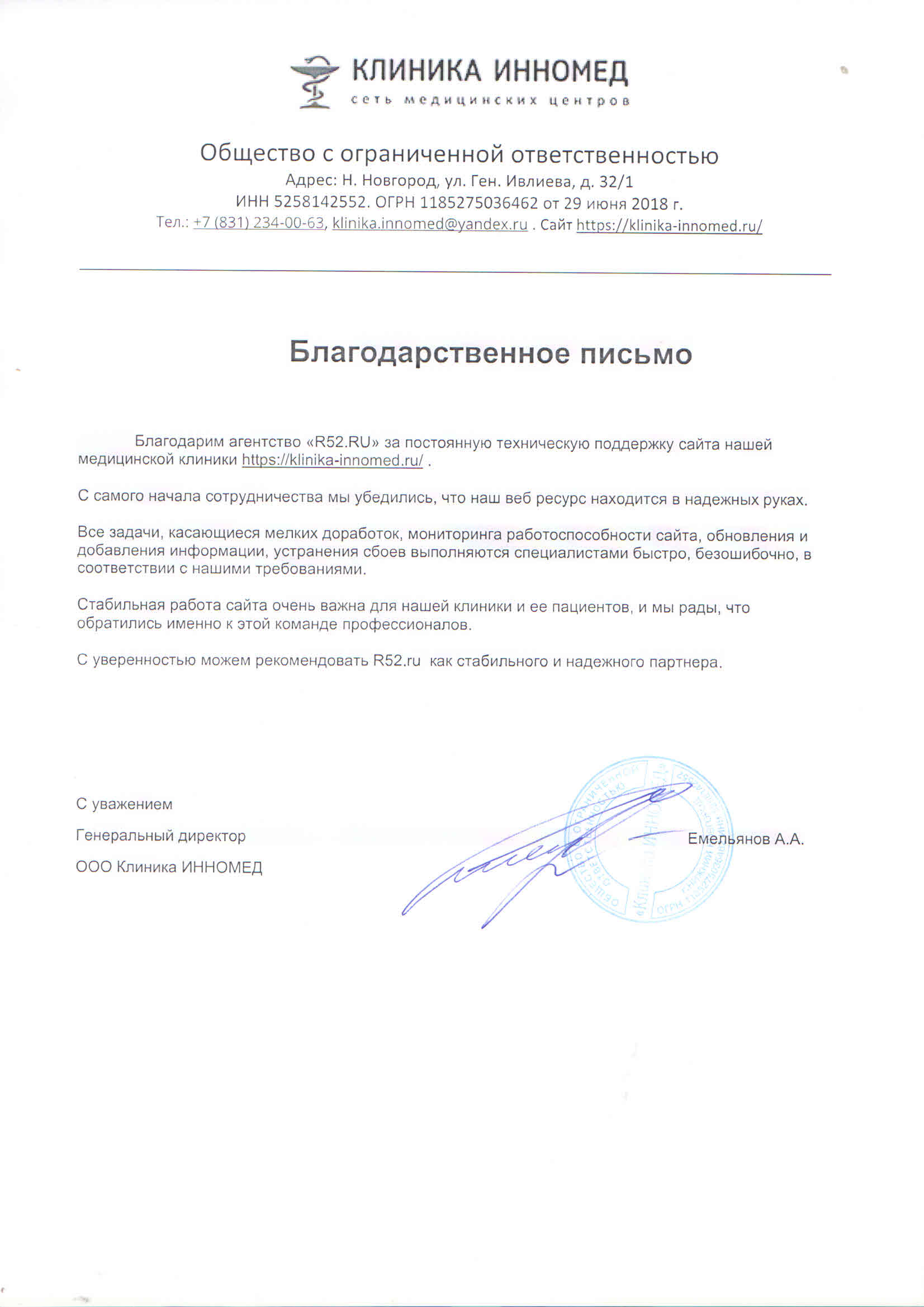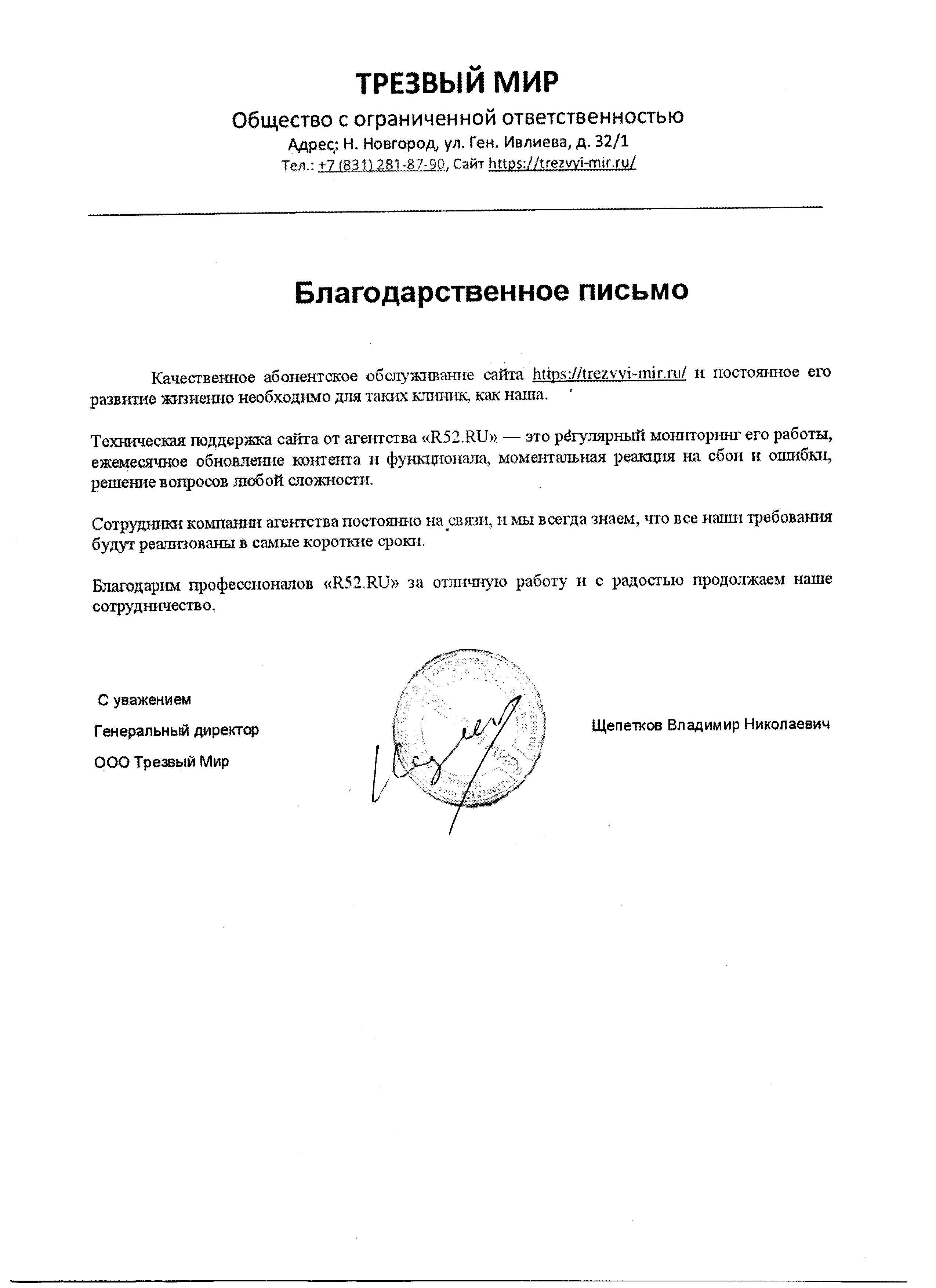 Благодарим команду «Р52.РУ» за креативный подход к работе, ответственность и пунктуальность. Мы довольны результатом и заинтересованы в продолжении сотрудничества.